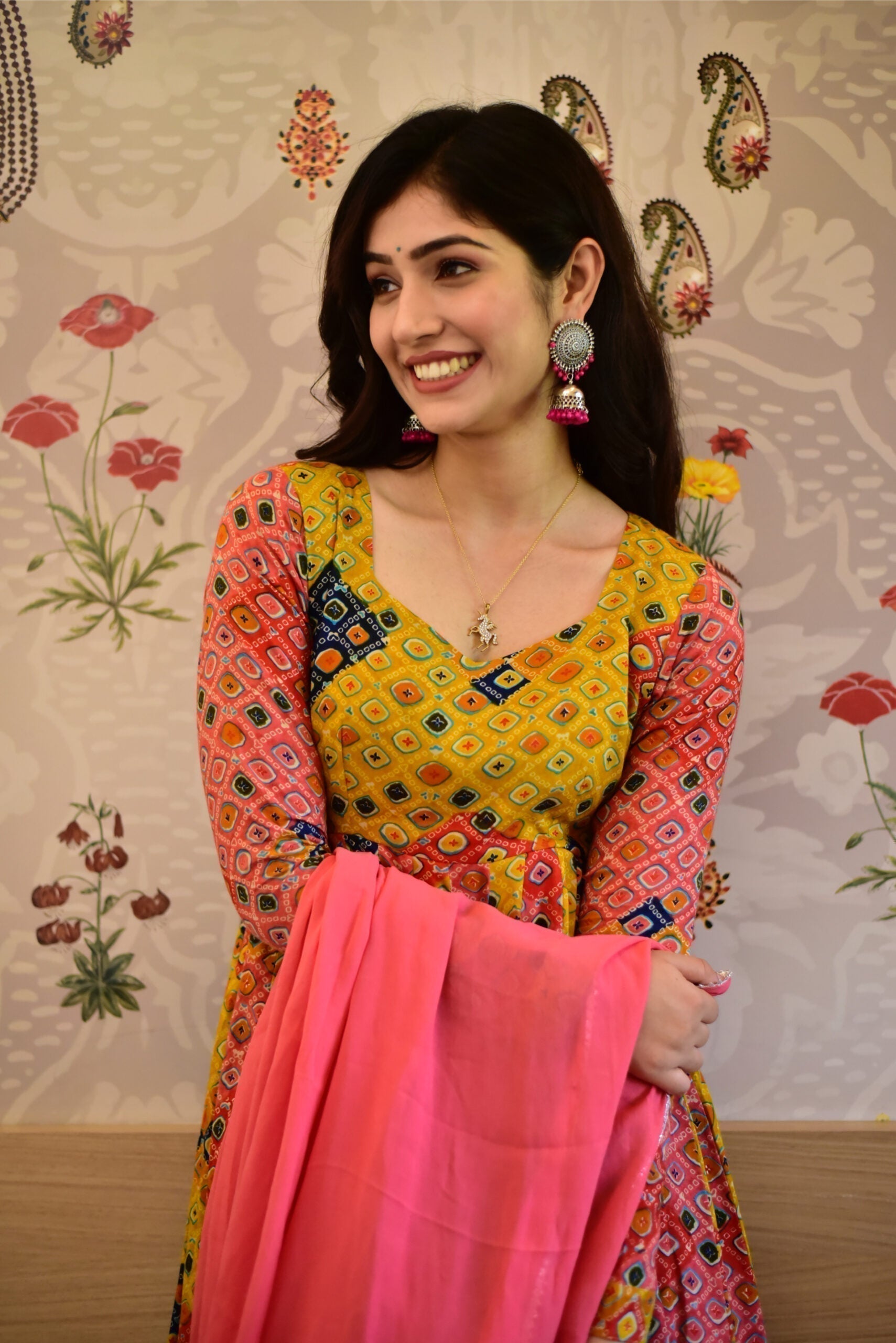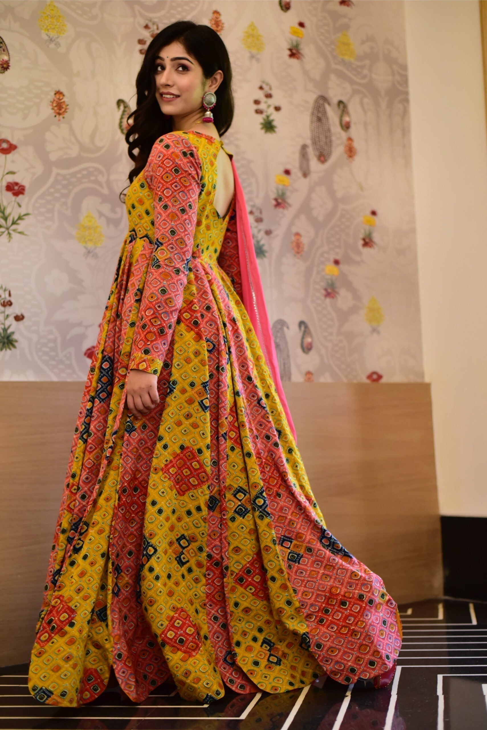 Aleena peach bandhej maxi set