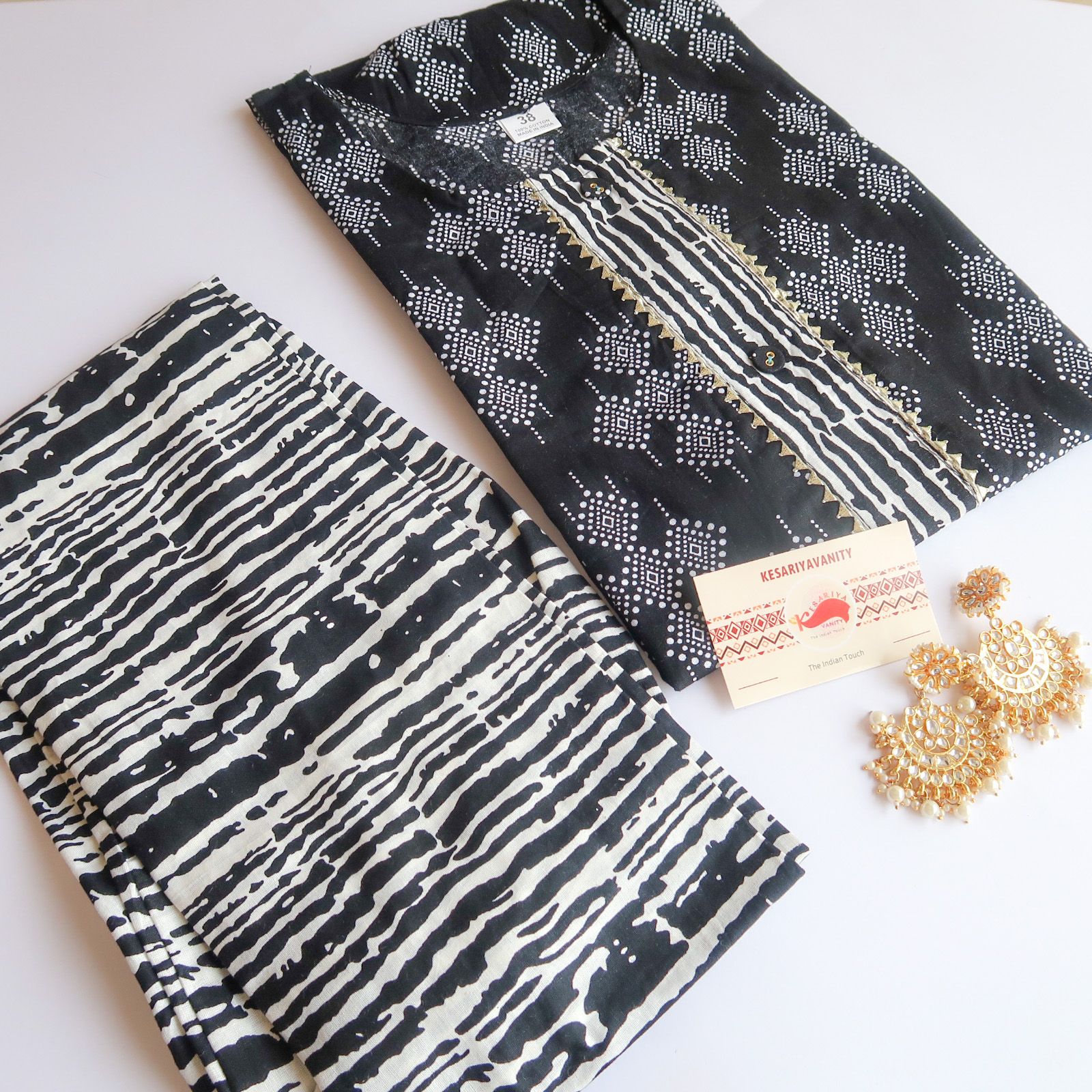 cotton kurta with cotton pants, Half drawstring and half elastic closure.