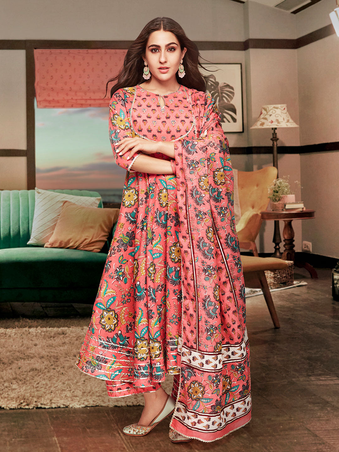 Light, bright, and full of life, this suit set will make a delightful addition to your wardrobe. Tailored with flowy silhouettes with classic golden prints, it is spruced up with a trendy fit.