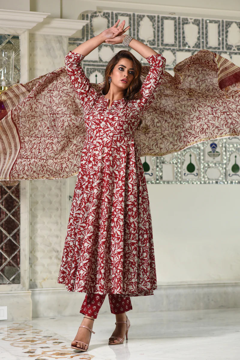 Natural-dyed colors might bleed during the first few washes or rub against the skin & other light-colored garments. In the artful process of hand block-printing, embroidery work and stitching, variations are likely to come into existence. These irregularities are the hallmark of all handmade products and give each style a unique identity.