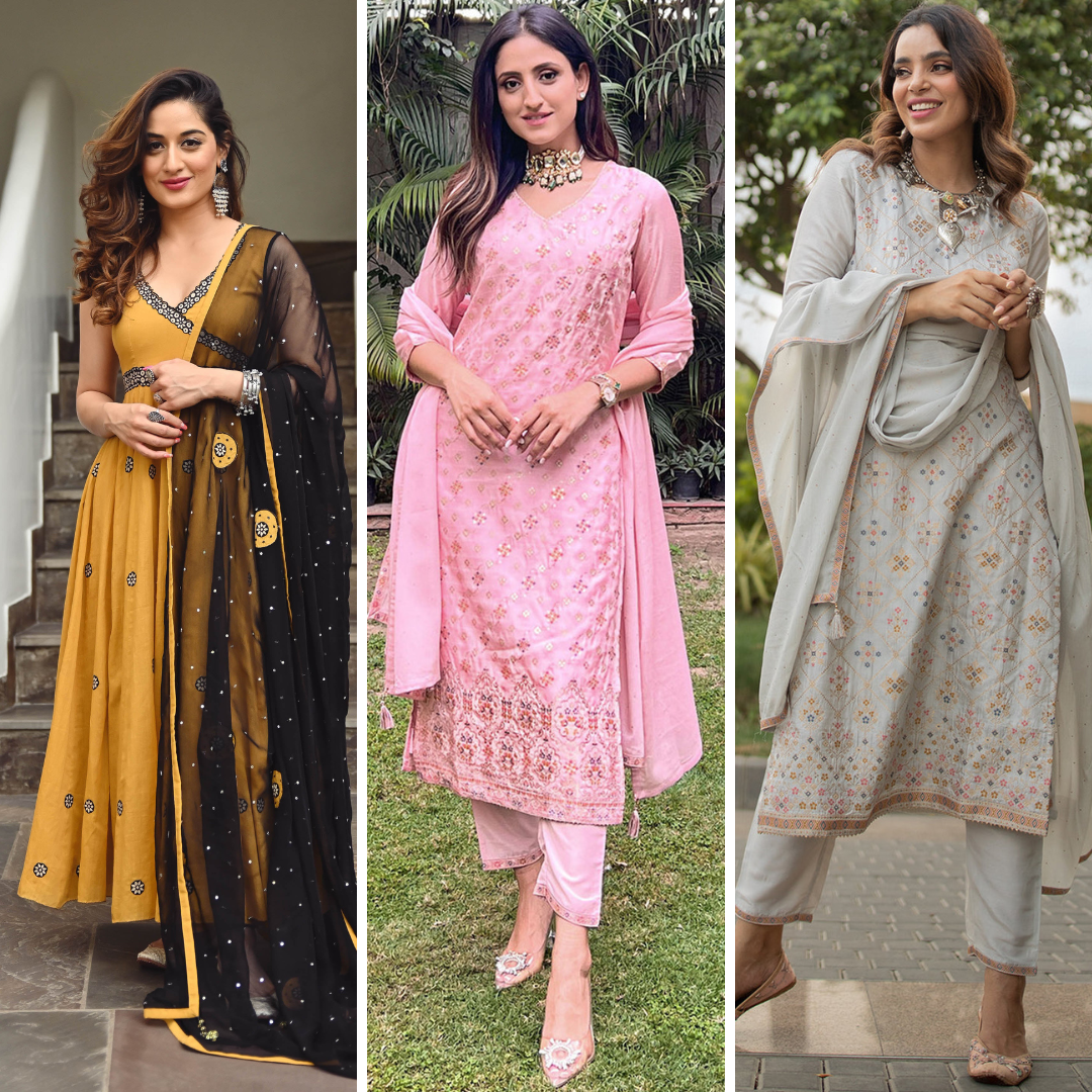 Light, bright, and full of life, this suit set will make a delightful addition to your wardrobe. Tailored with flowy silhouettes with classic golden prints, it is spruced up with a trendy fit.