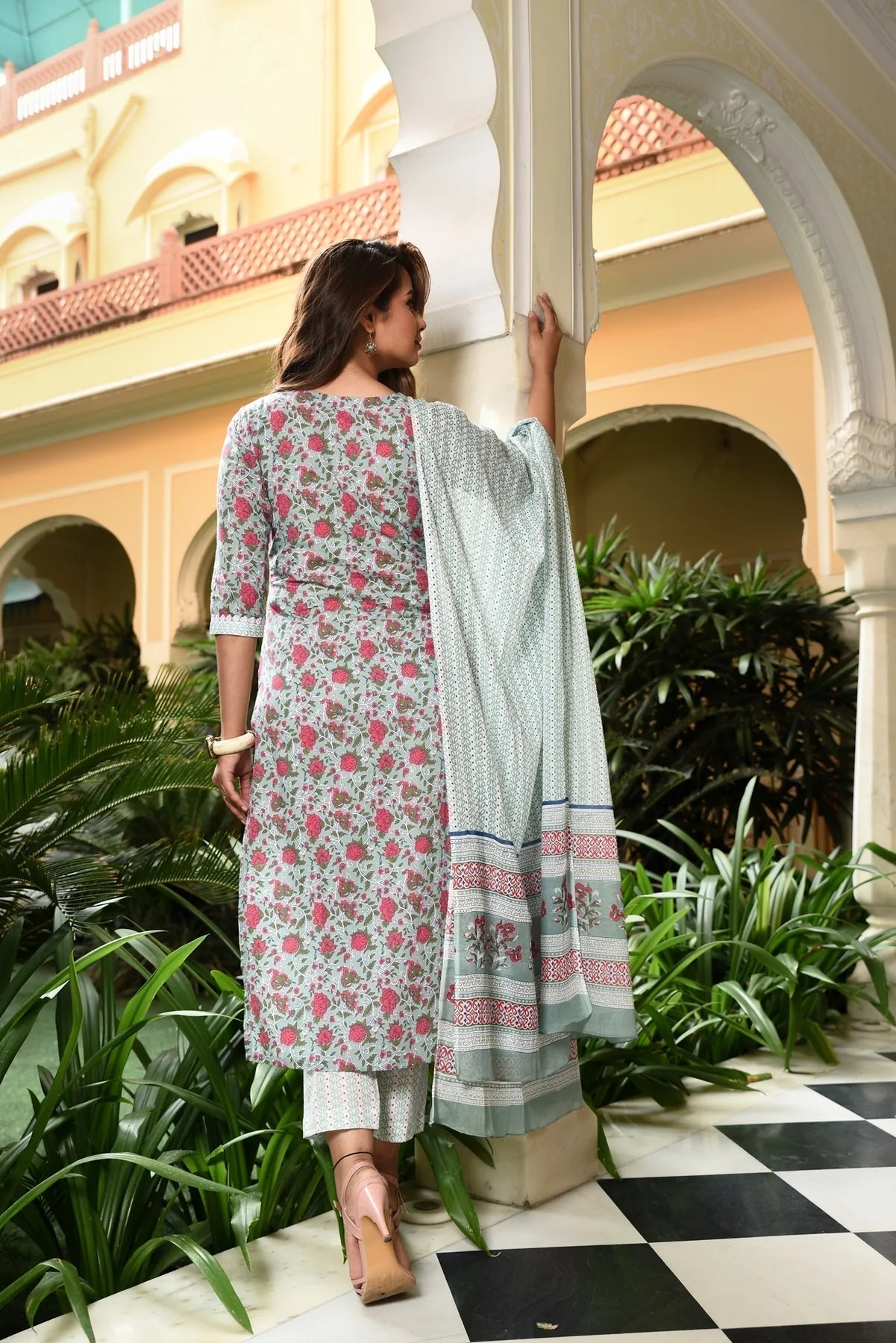 Light, bright, and full of life, this suit set will make a delightful addition to your wardrobe. Tailored with flowy silhouettes with classic golden prints, it is spruced up with a trendy fit.