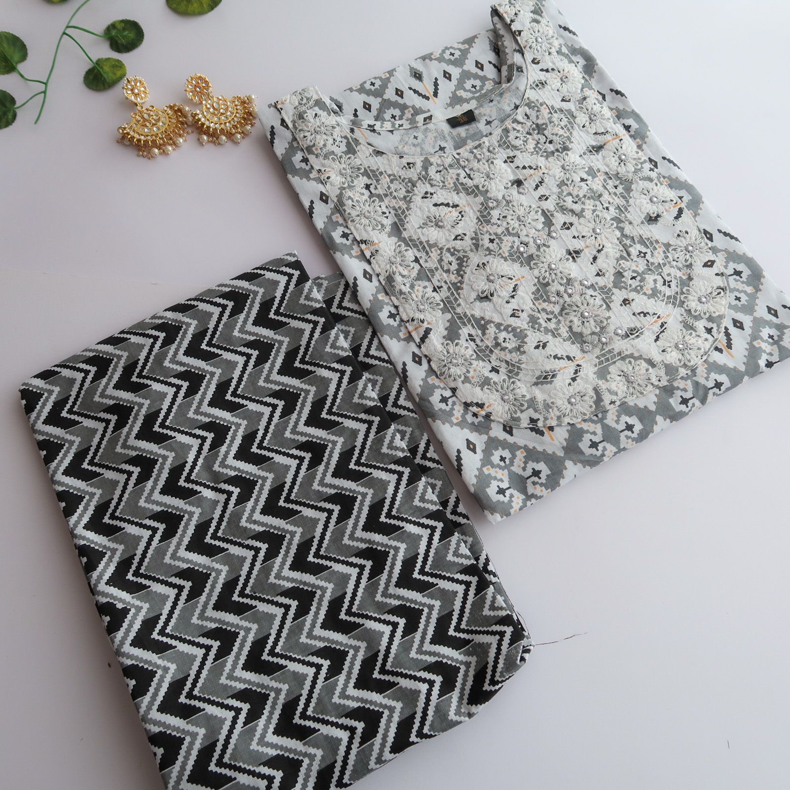 cotton kurta with cotton pants, Half drawstring and half elastic closure.