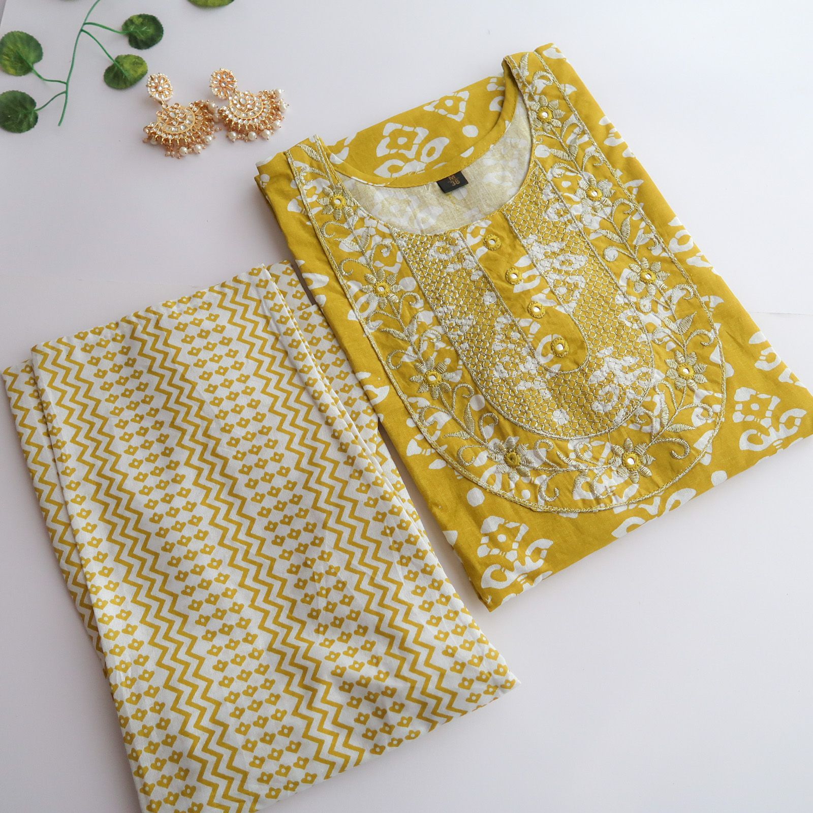 cotton kurta with cotton pants, Half drawstring and half elastic closure.