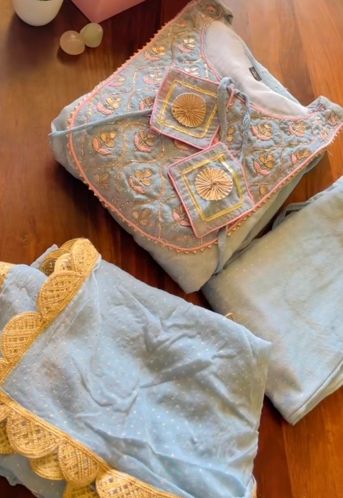 Special ocassions deserves elegant ensembles such as our Indigo Glam Festive Ready Suit Set