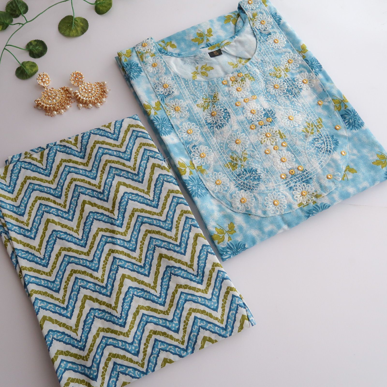 cotton kurta with cotton pants, Half drawstring and half elastic closure.